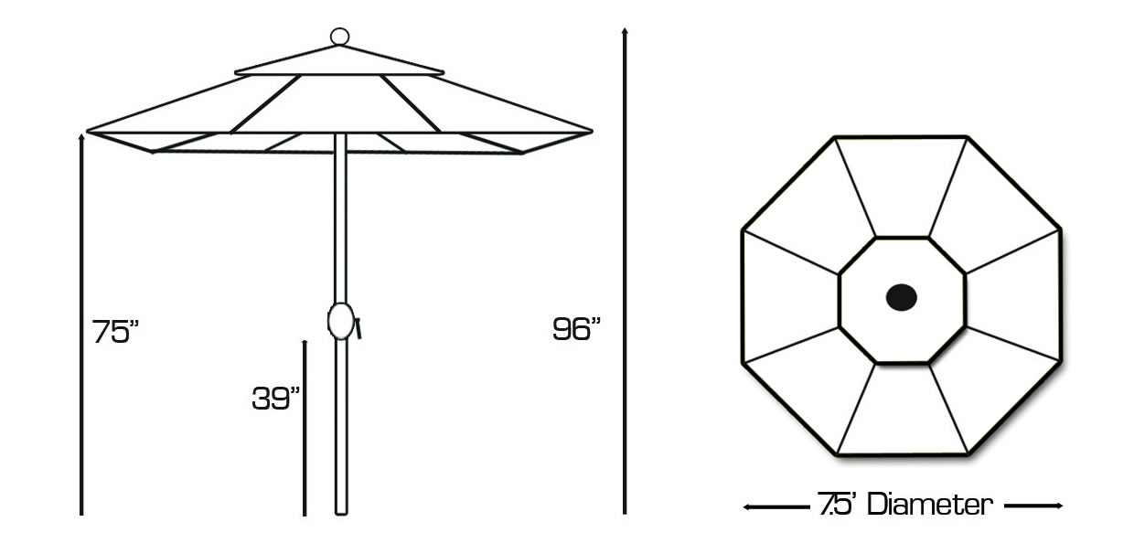 This round umbrella is 7.5 feet wide, which makes it a great fit for home patios, small dining sets, or bistro tables up to 46 inches wide. Furthermore, the finish on the frame resists rust and weather damage to keep it looking new. We also use premium outdoor fabrics that provide excellent UV protection and last for a long time.