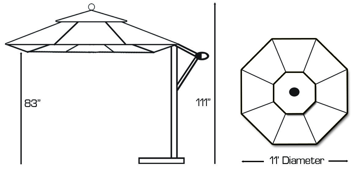 Galtech 887 11′ Round Cantilever Umbrella with Roller Base has a popular Antique Bronze finish or black finish on the aluminum pole. It is designed to complement many styles of outdoor furnishings. The Easy Open Lift system allows you to open and extend the cantilever arm in one simple motion.