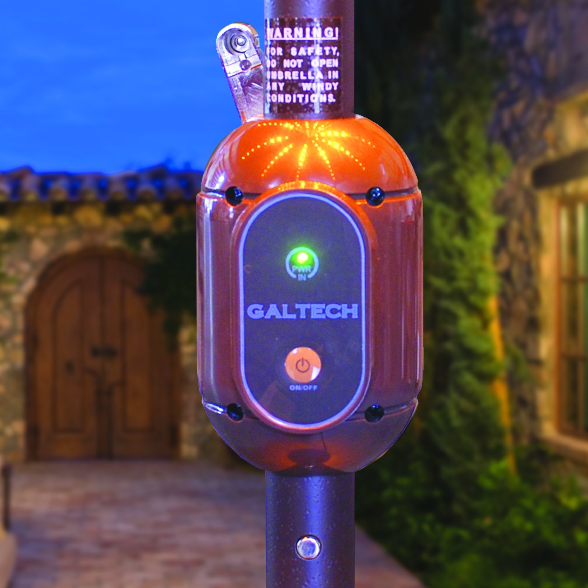In addition to superior shade performance, the Galtech 936 9′ Round Deluxe Auto Tilt Patio Umbrellas with LED lights includes a built-in low-voltage LED lighting system that enhances your outdoor environment after sunset.